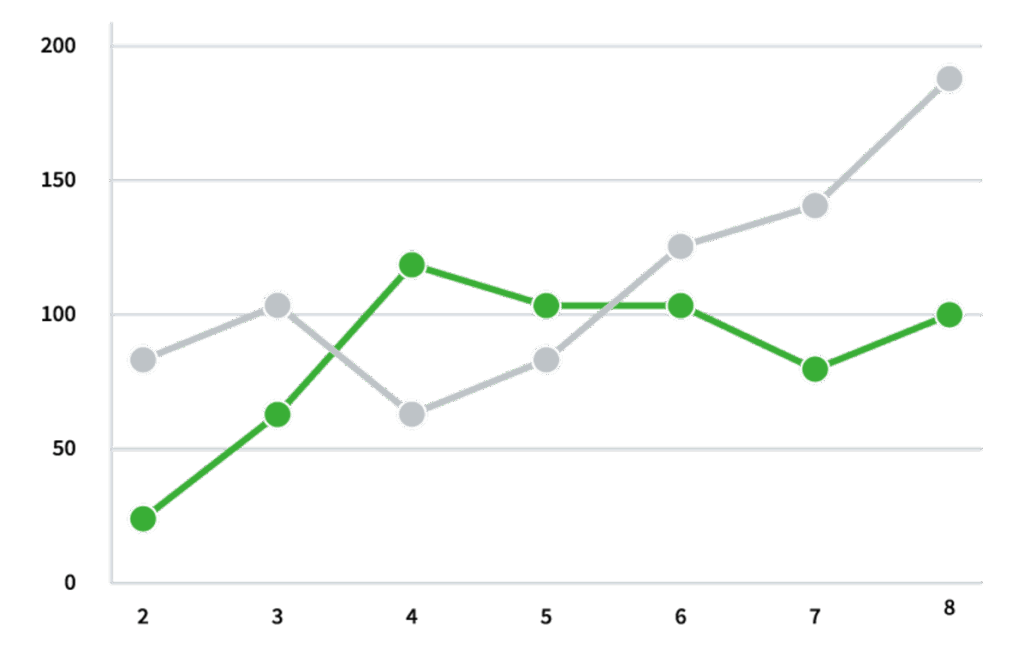 折れ線グラフで成長を見せる